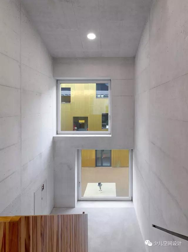 建筑一共三層,地面層由自助餐廳、廚房、學齡前兒童的衣帽間和一些活動區域如閱讀區,運動區組成??Х葟d與室外空間直接相連。托兒所位于二樓配備有電梯出入口和遮擋露臺。另一棟建筑全部由托兒所“le nid”組成。自助餐廳,廚房,衣帽間位于以及協調員辦公室供兒童使用。各自占據了整整一層,空間排列方式大同小異。有供暖的地下通道方便人們在地下穿行。(幼兒園室內設計)
