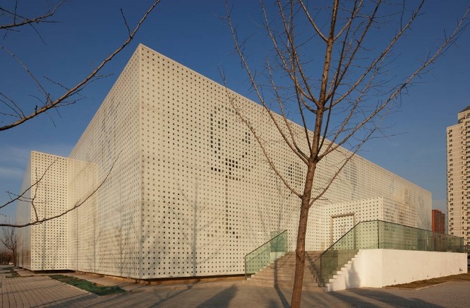 家盒子的外觀,設計師采用了一個多孔的造型結構,為了避免室內過熱。同時更傾向于把這個外觀看做一張白紙,利用孔洞大小變化制造出了一系列兒童涂鴉的形狀,并以此來呼應主題。使得整個兒童空間的造型設計非常巧妙、獨特。
